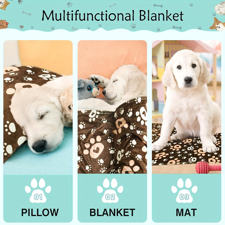 Wrap your furry friend in softness with the CozyPaws Fluffy Pet Blanket, designed to bring warmth, comfort, and security to small and medium dogs as well as cats. Made from ultra-soft, washable fabric, this blanket is gentle on sensitive skin and perfect for year-round use. The adorable paw-print pattern adds a touch of charm, making it a cute addition to any crate, bed, sofa, or travel carrier.