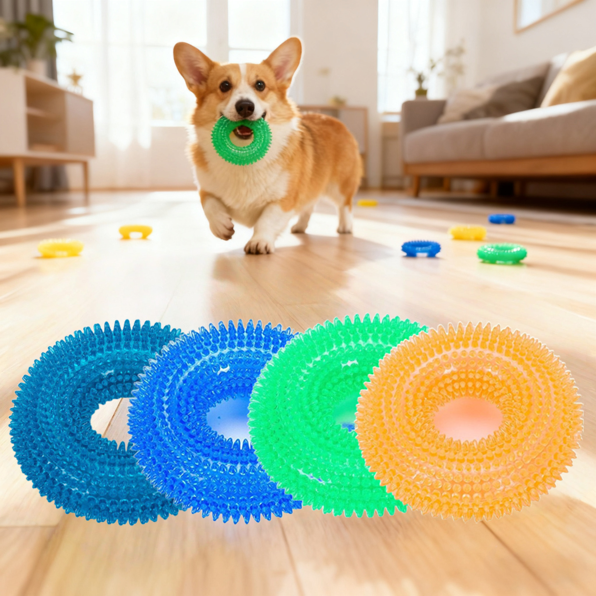 • Donut-Shaped Design: Fun, colorful, and easy for dogs to grip.